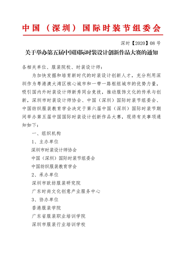 关于举办第五届中国国际时装设计创新作品大赛的通知